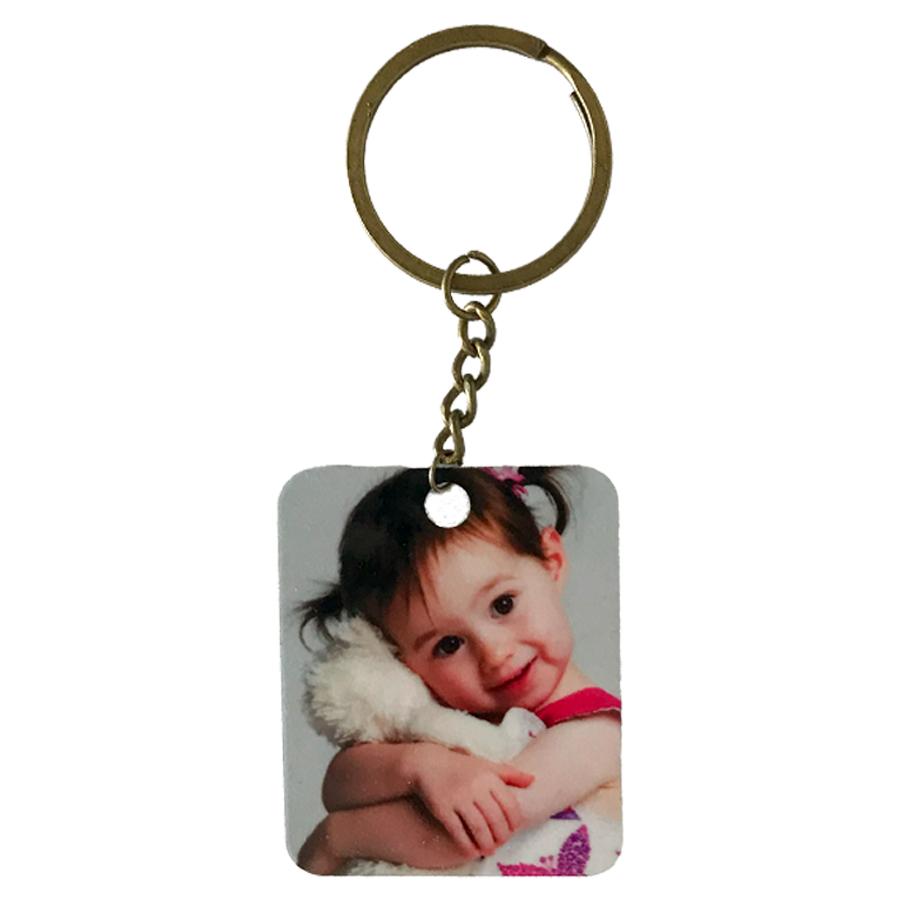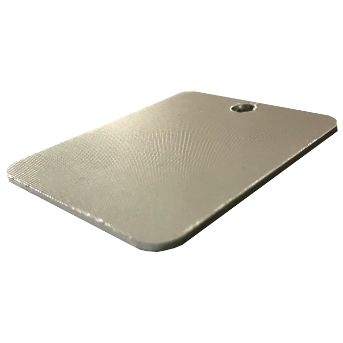 Igazolványkép méretű fémlap, lekerekített sarkokkal és felül, középen elhelyezett lyukkal, melynek mindkét oldala a szokványos szublimációs eljárással kezelhető. Így könnyű, látványos, tartós kulcstartó készíthető belőle.