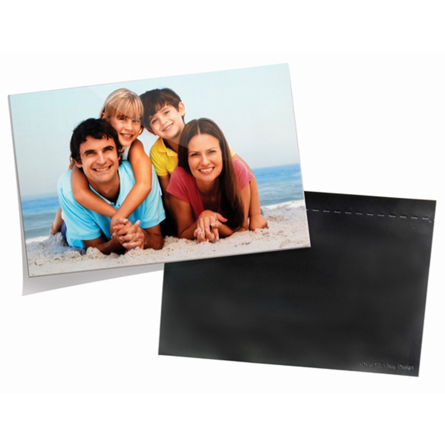 A normál módon elkészített 10x15 képet a mágneslap öntapadós felületére csak rá kell simítani, majd egy vágóval körbevágni.