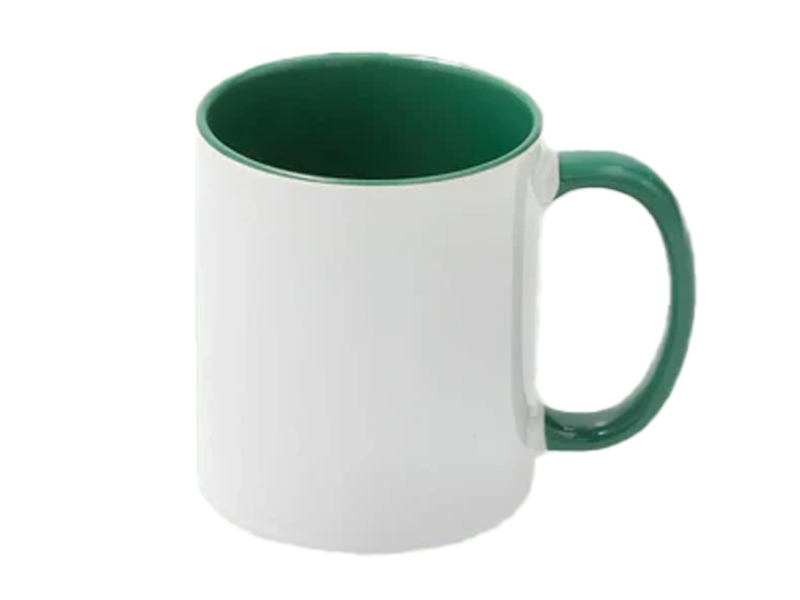Bögre, 3dl színes fülü és belsejű - sötétzöld