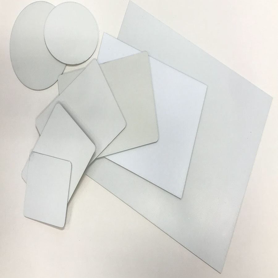 Fehér alapszínű metál lap szublimáláshoz, UV álló bevonattal, ovális kialakítással.