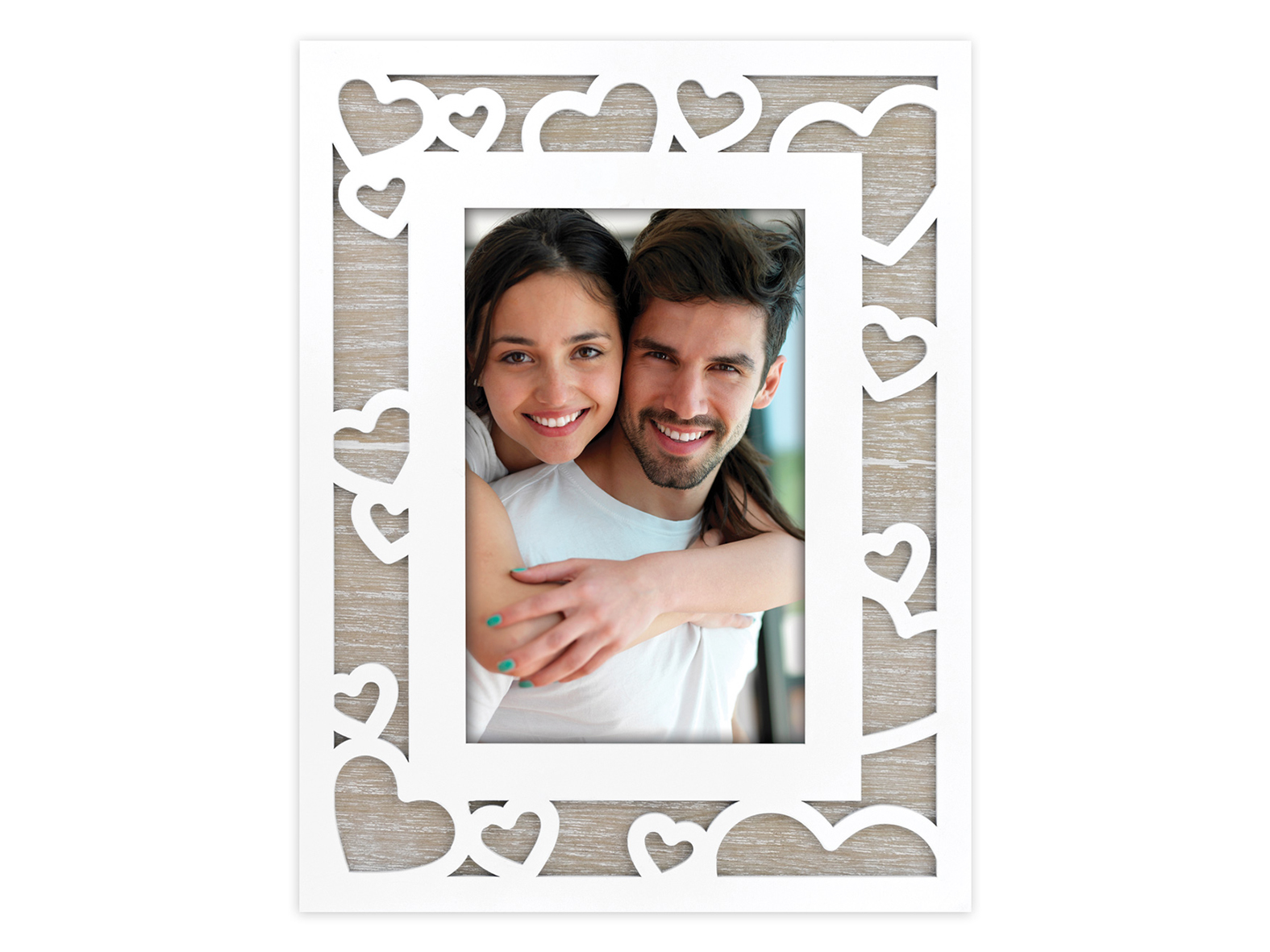 Fa keret, dombornyomott szív alakú díszítéssel