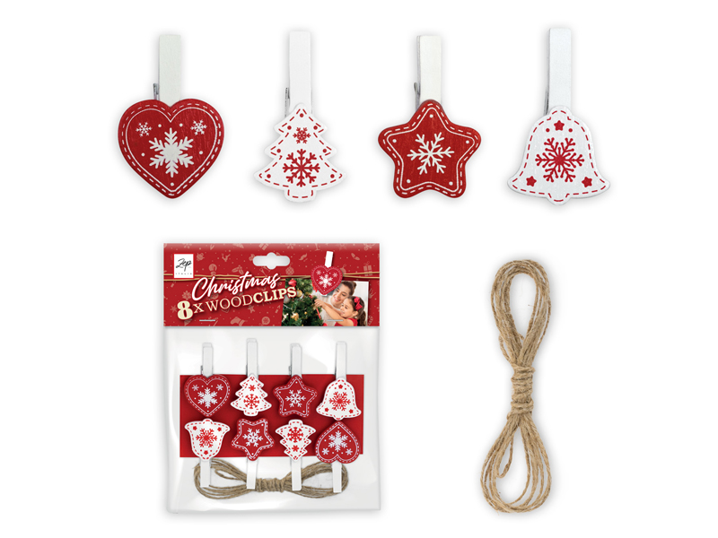Karácsonyi csipesz madzaggal Madzag hossza: 2m 8db/csomag