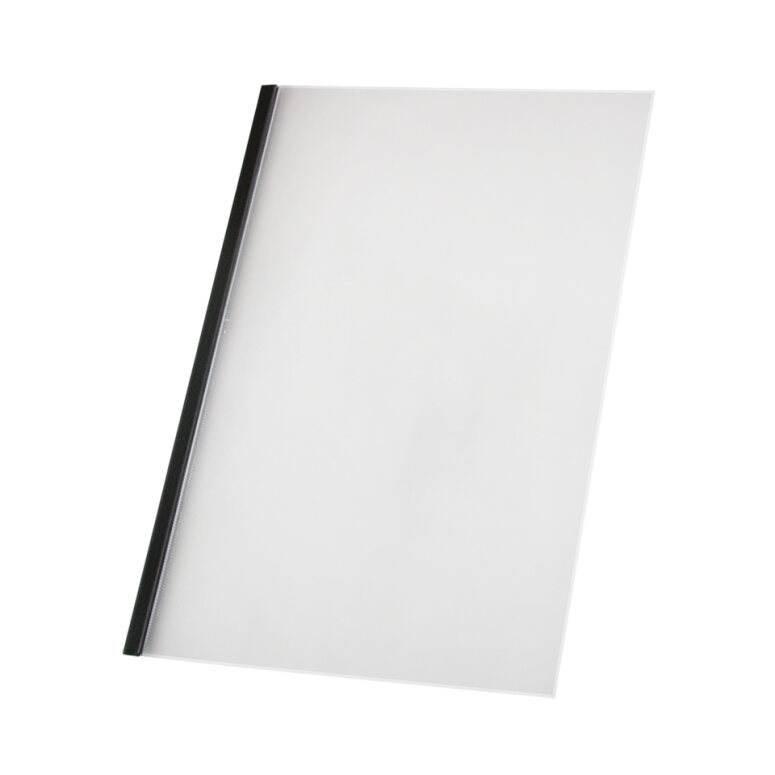 Áttetsző előlap, fekete gerinc 40-60 lapos A4 dokumentumhoz. Bármelyik Peleman hőkötő géppel pár másodperc alatt elkészíthető a professzionális kiadvány.