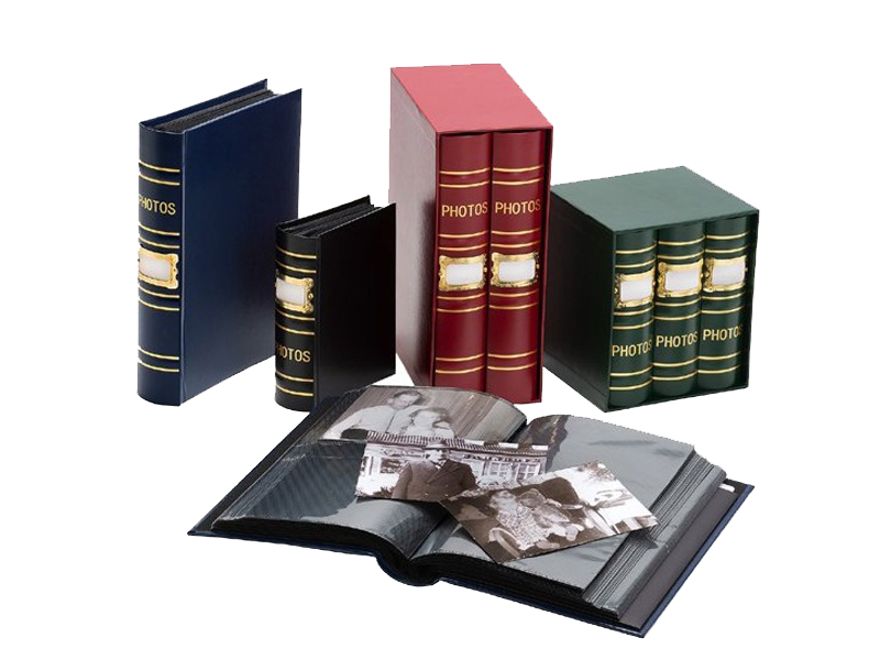 Kemény fedelû könyv alakú fotoalbum celofánnal ellátott fehér betétlapokkal, memo csíkkal