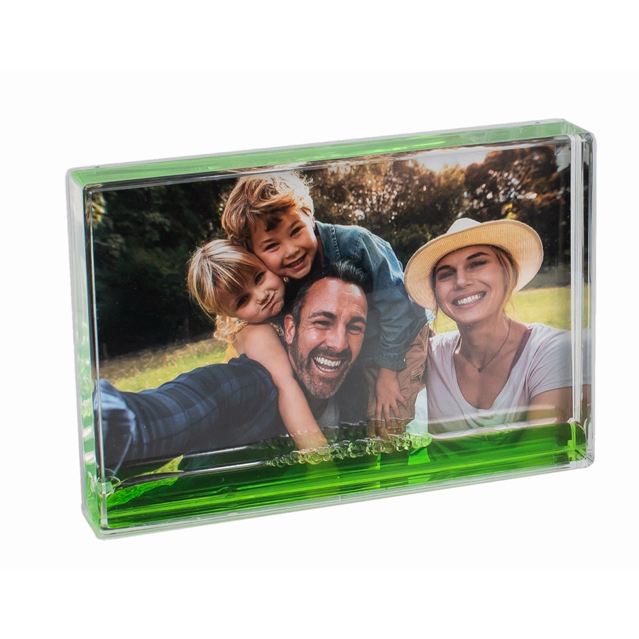 A hasáb hátuljába egyszerűen beilleszthető (és cserélhető) kép előtt egy mgas viszkozitású, lassan hömpölygő színes folyadék hullámzik.