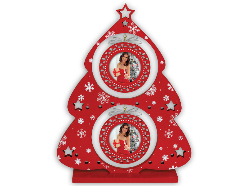 Karácsonyi képkeret Képkeret mérete: 21*5*28 cm Berakható kép mérete: 2 db 6*6 cm Asztali kivitel